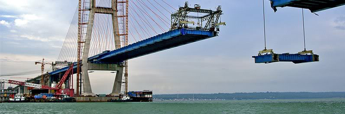Kedua, jembatan penghubung (approach bridge) yang terdiri dari bentang-bentang beton pratekan dan baja, menopang jalan raya hingga menuju bagian inti.